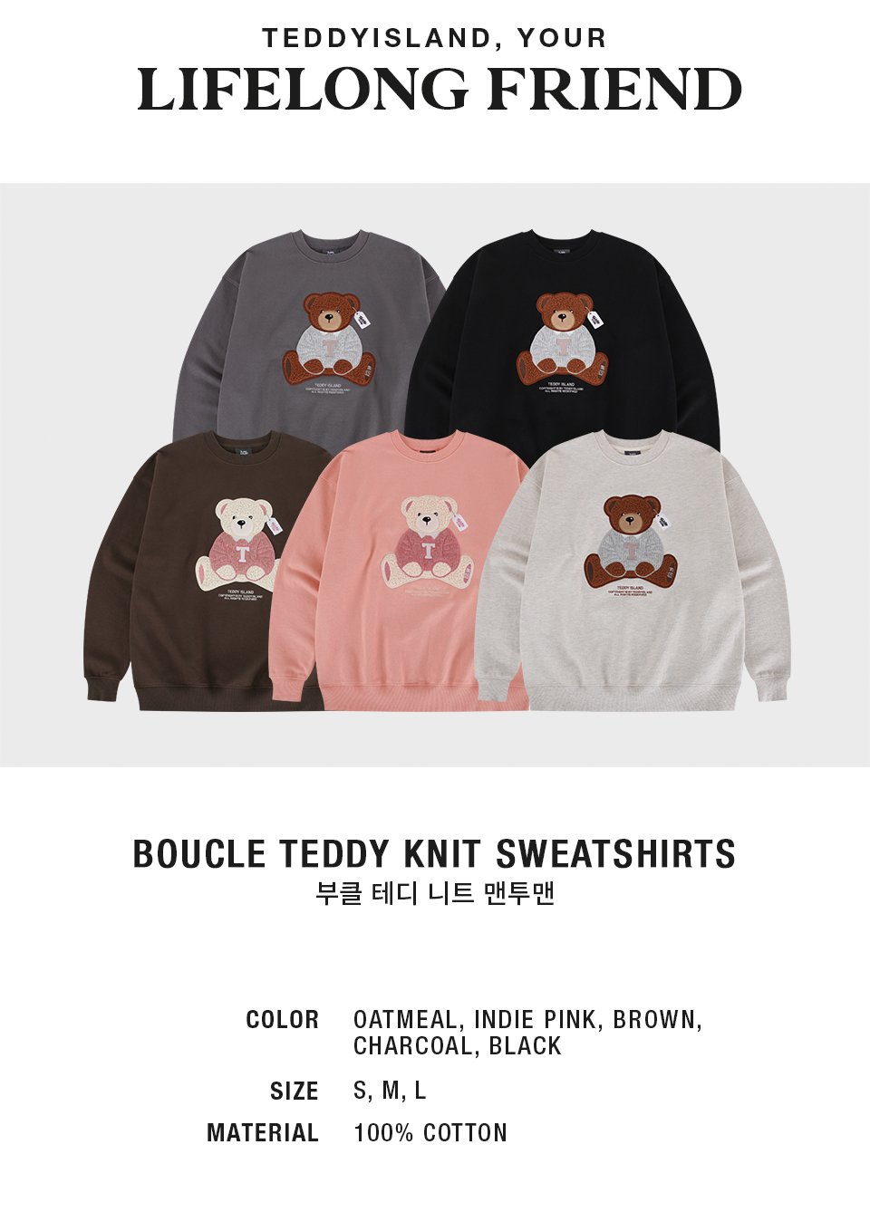 부클 테디 니트 맨투맨 [INDIE PINK]