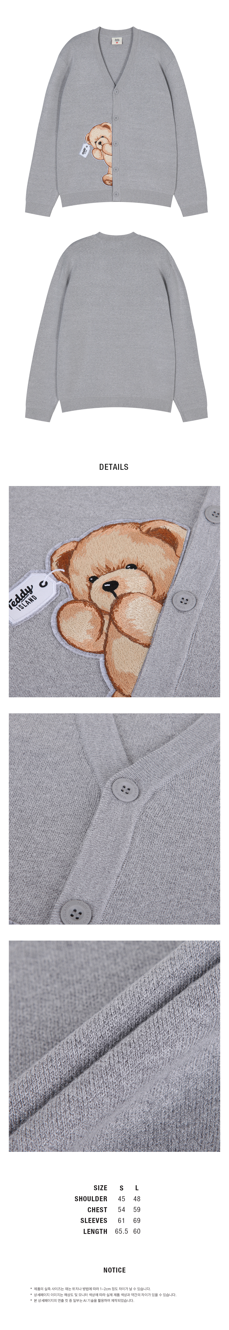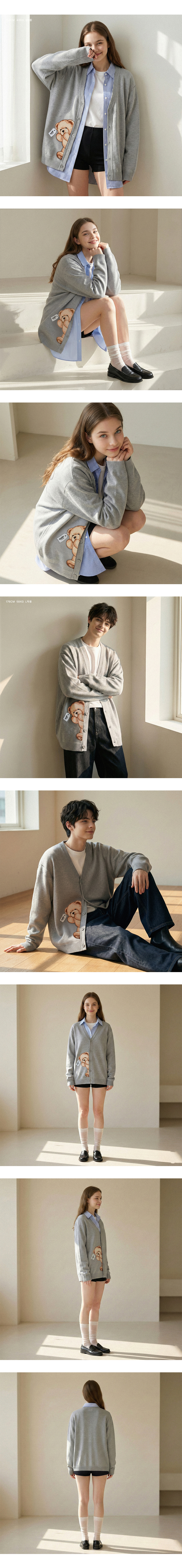 빼꼼 테디 자수 가디건 [GREY]